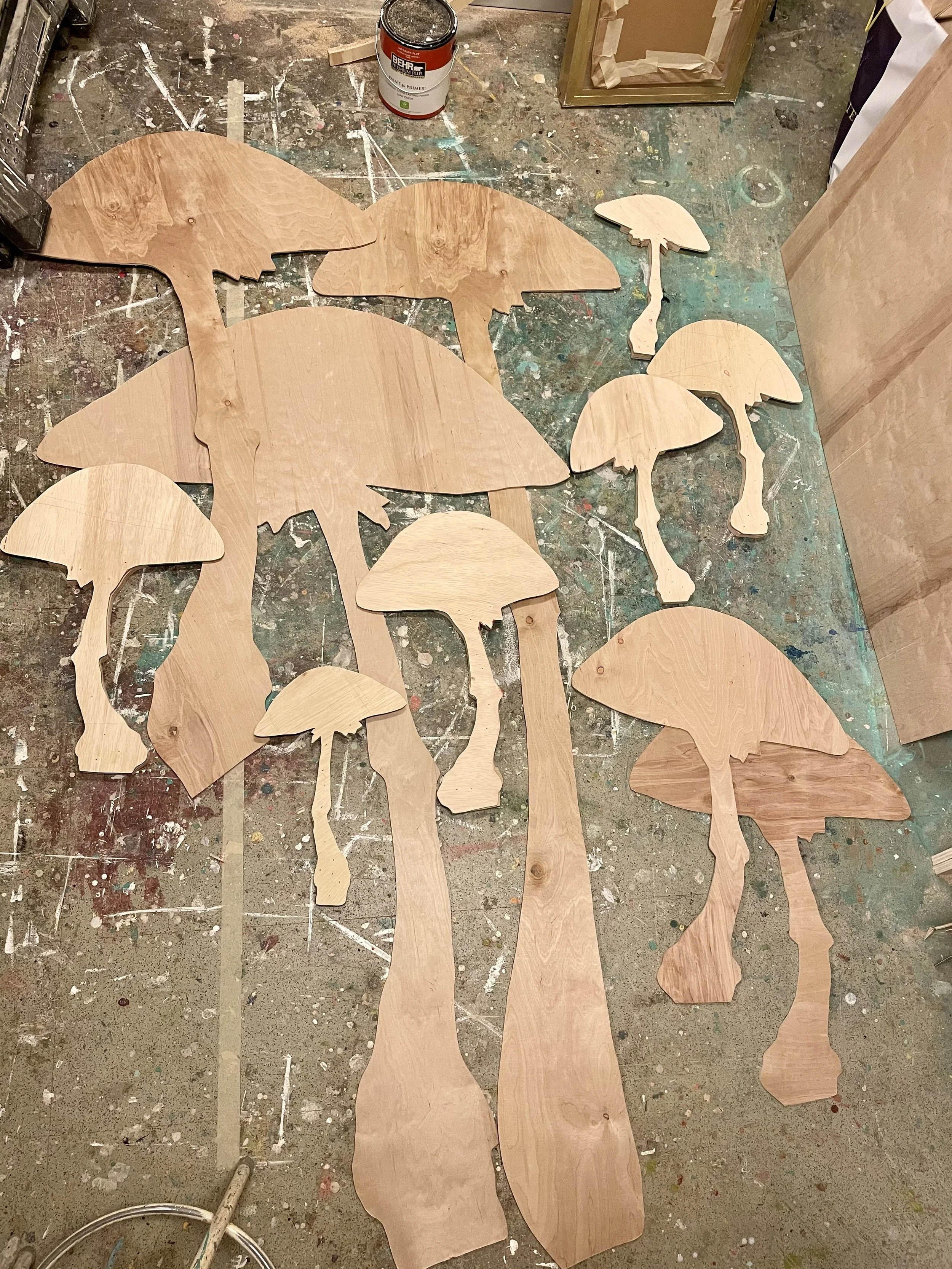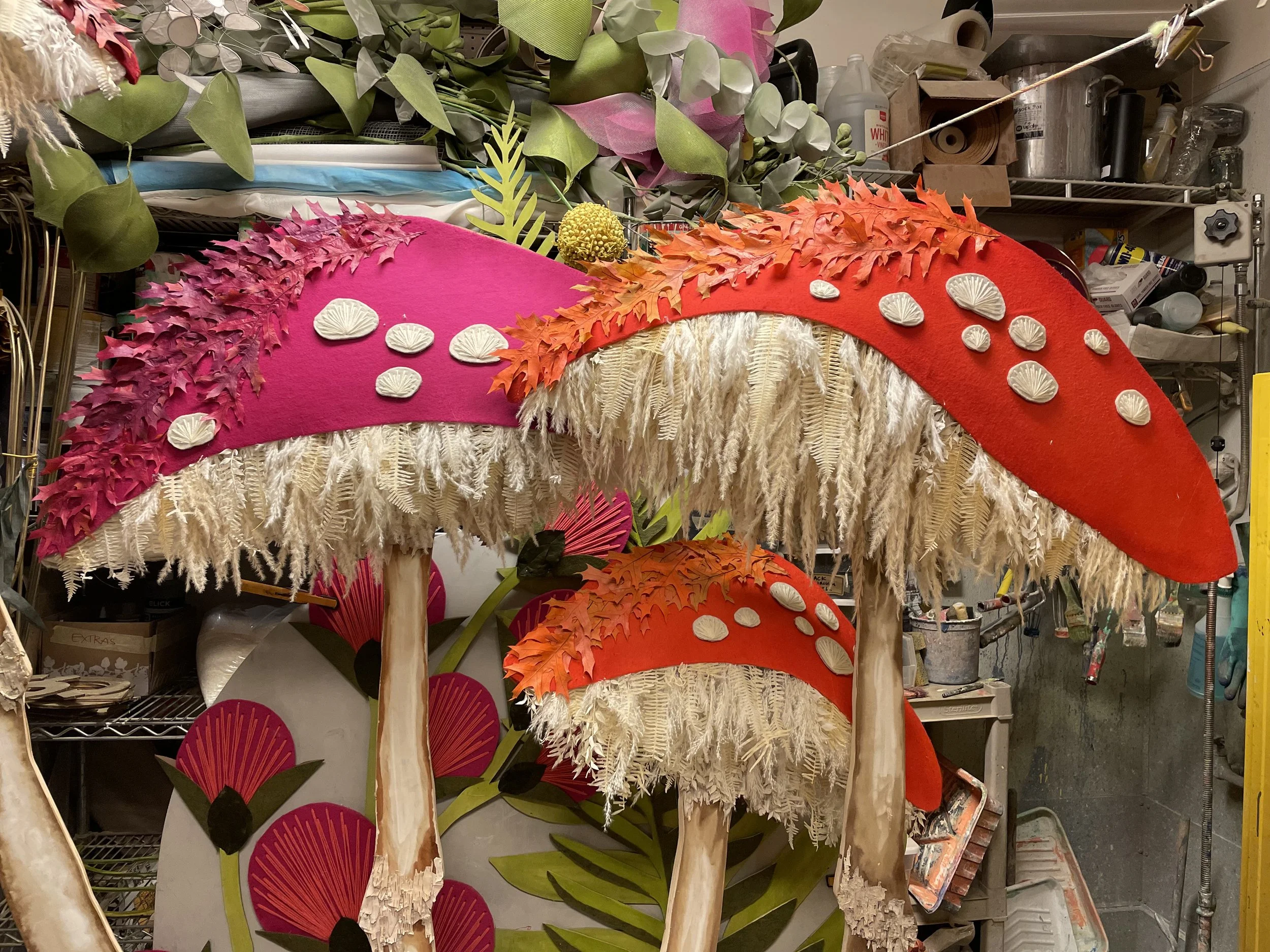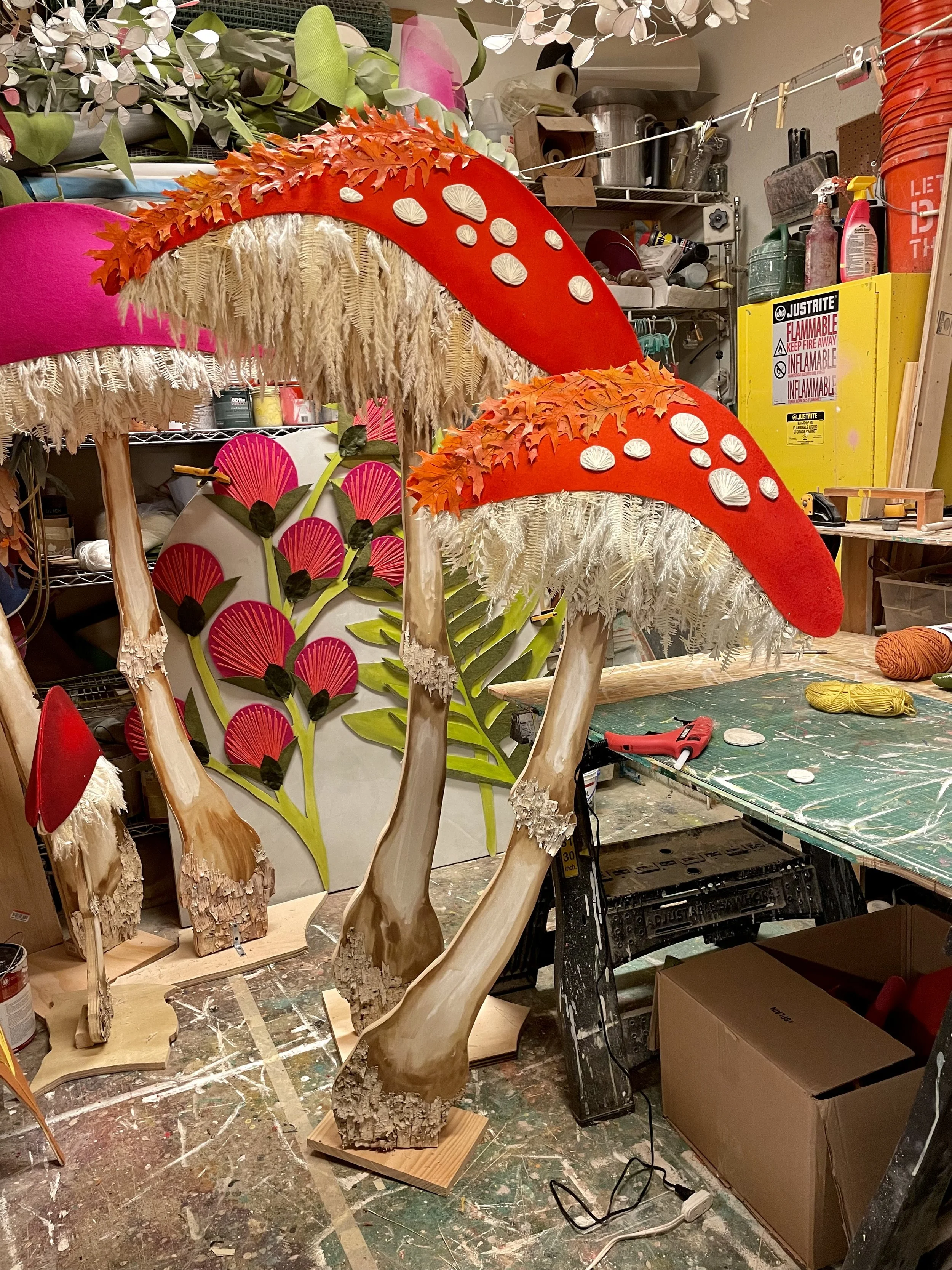 Over- scaled 2D elements of nature (mushrooms, ferns, thistles, oak leaves, and berries) were composed in decorative arrangements to tell the story of the perfect, enchanting forest scene.