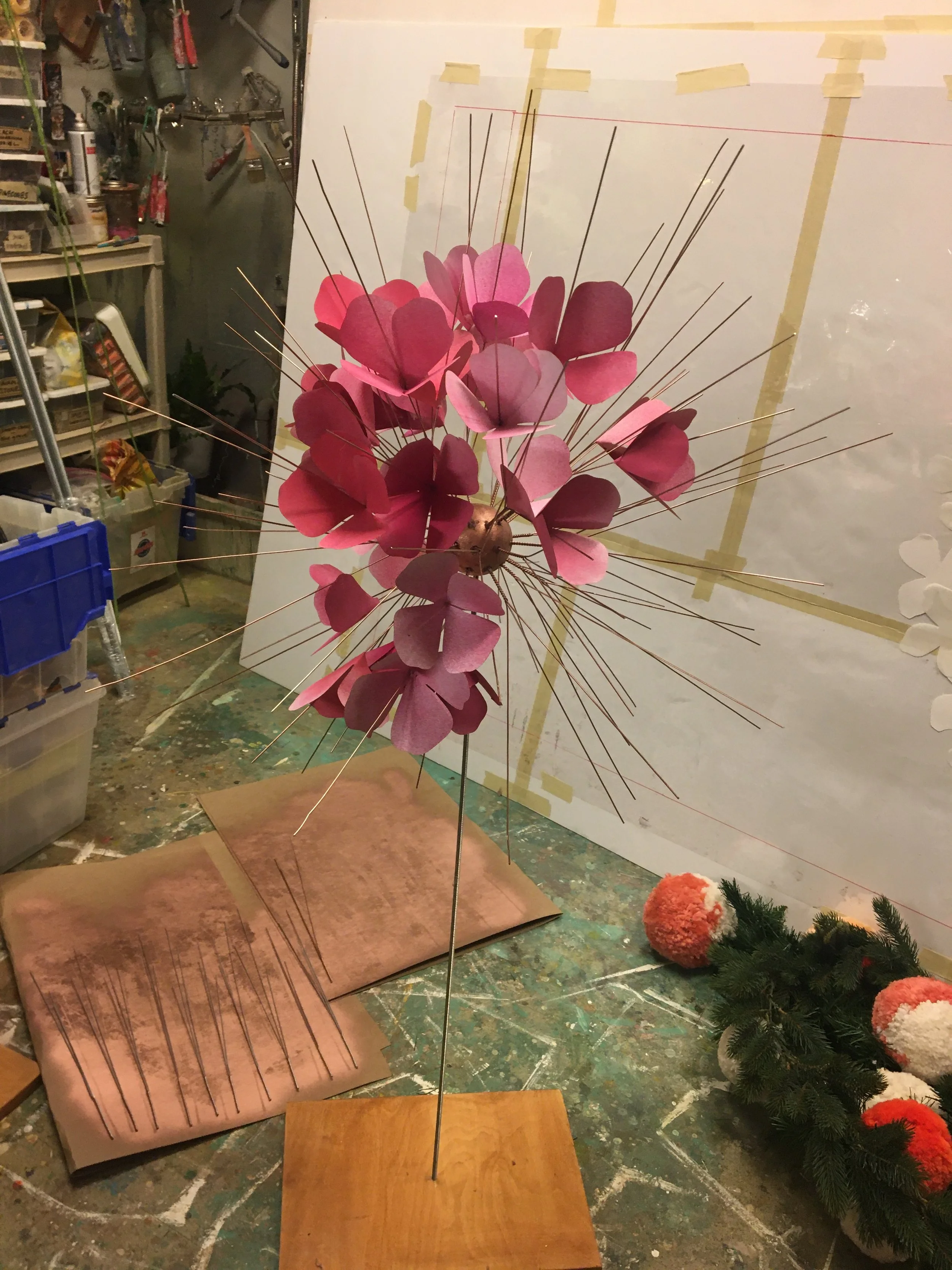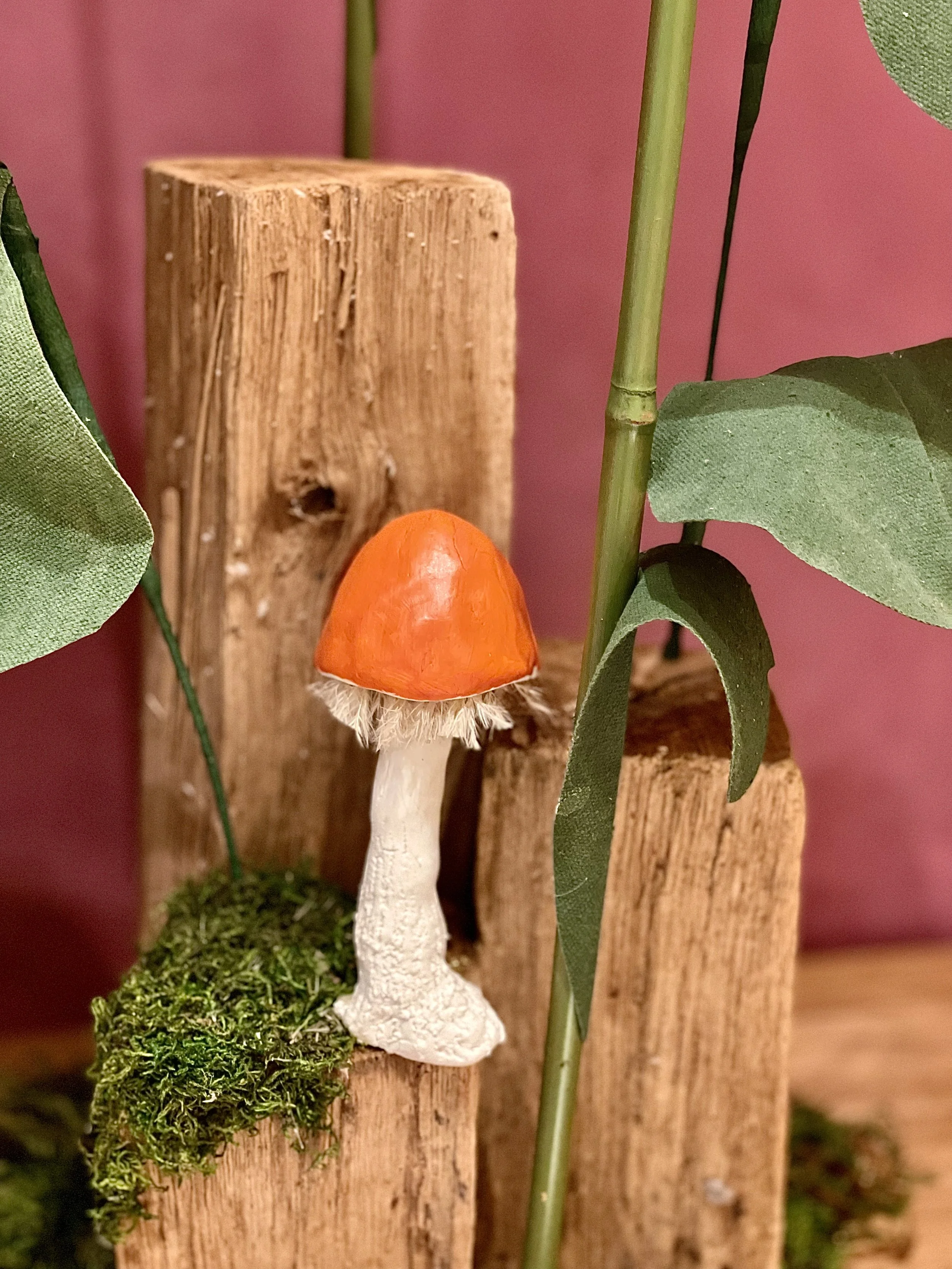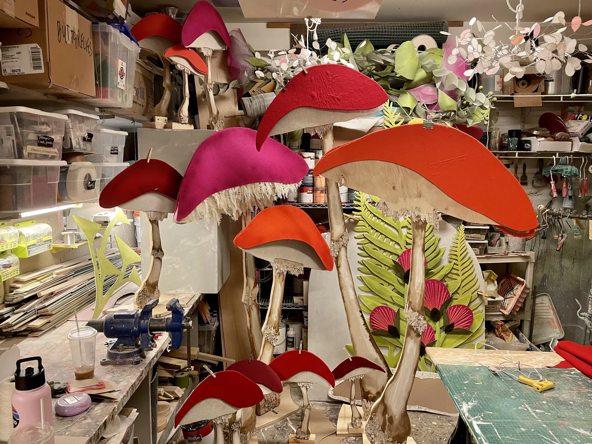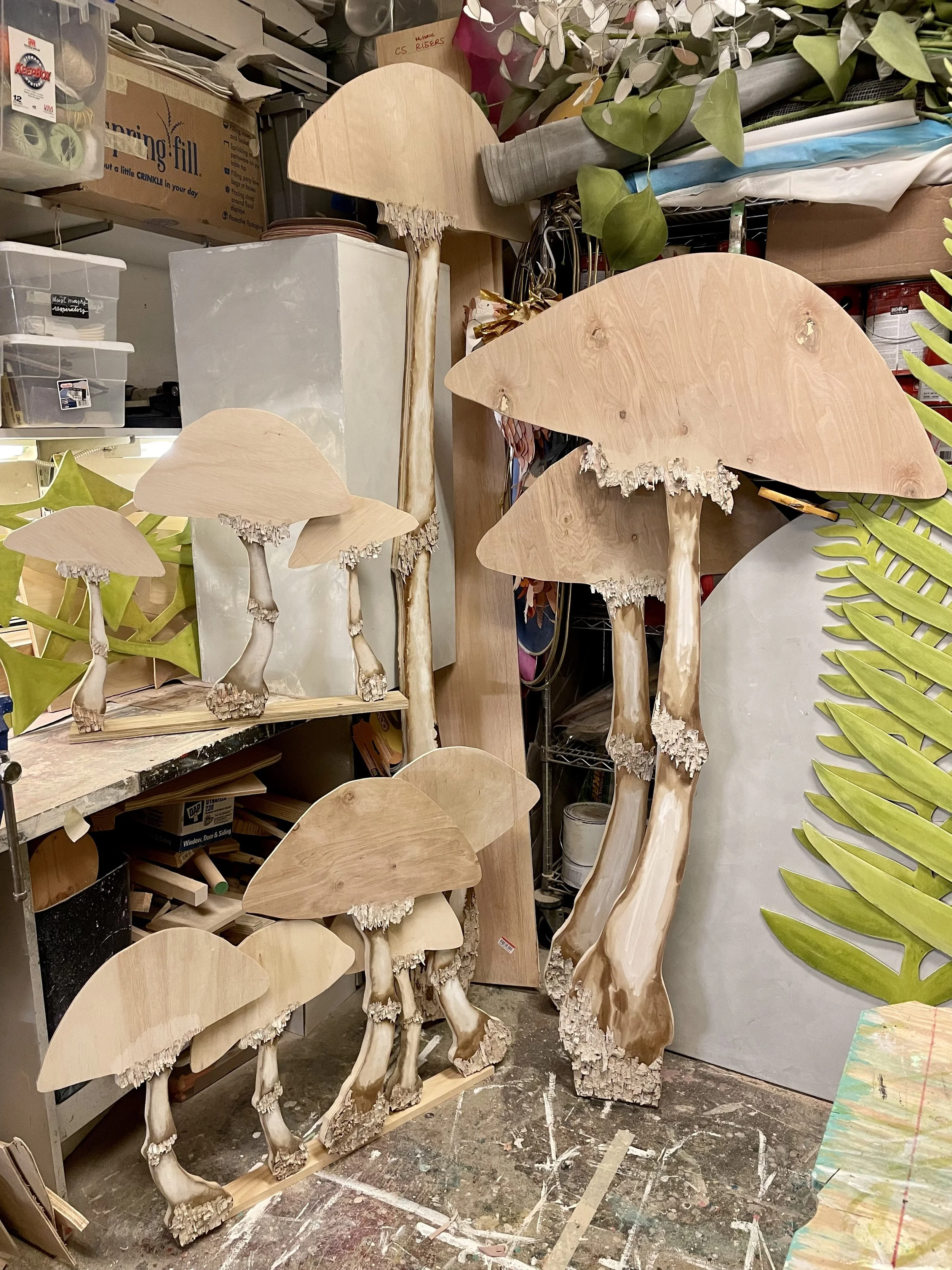 Over- scaled 2D elements of nature (mushrooms, ferns, thistles, oak leaves, and berries) were composed in decorative arrangements to tell the story of the perfect, enchanting forest scene.