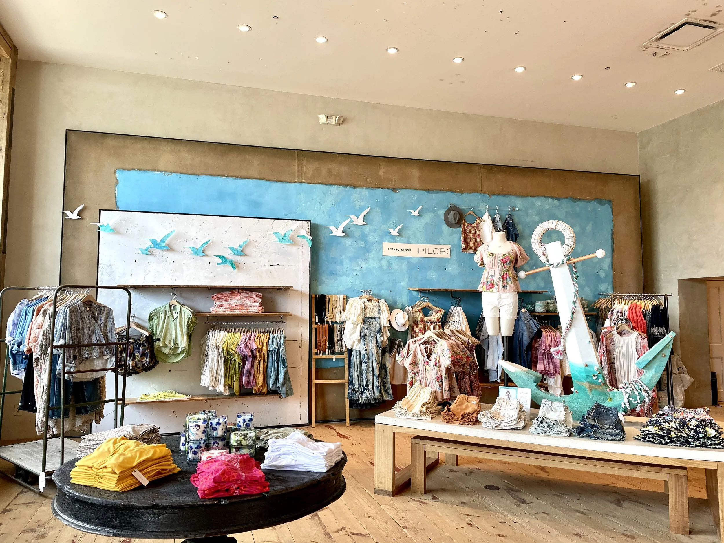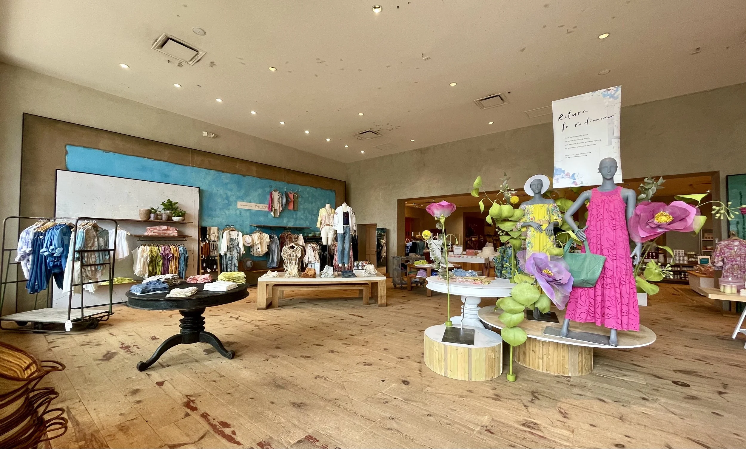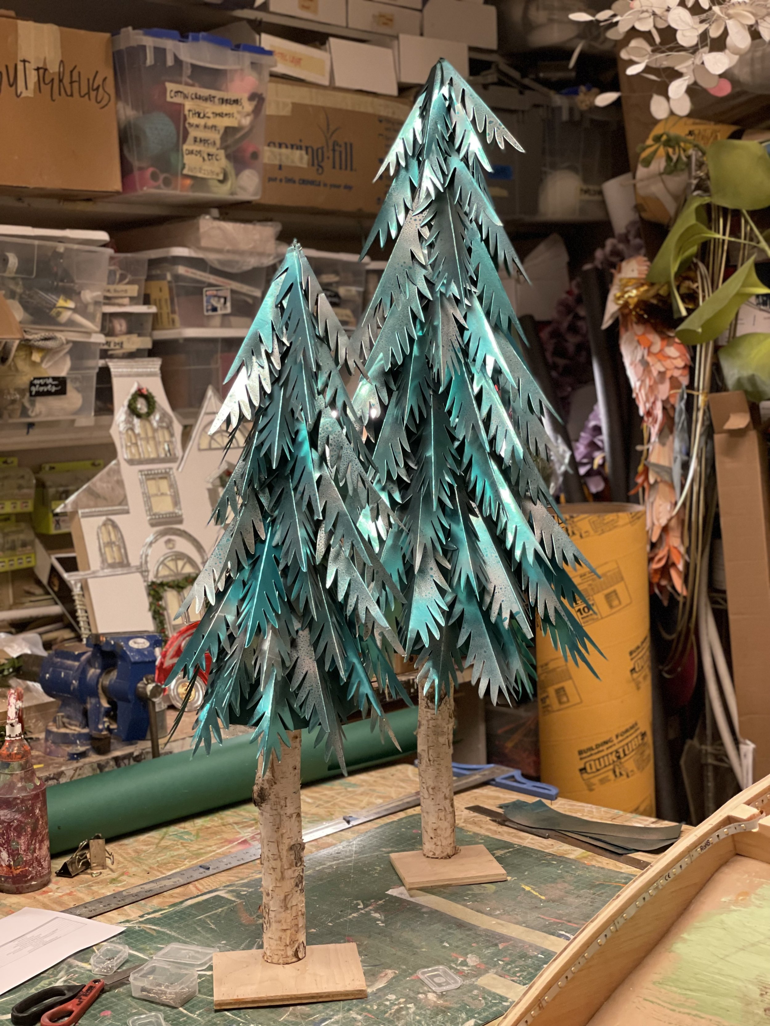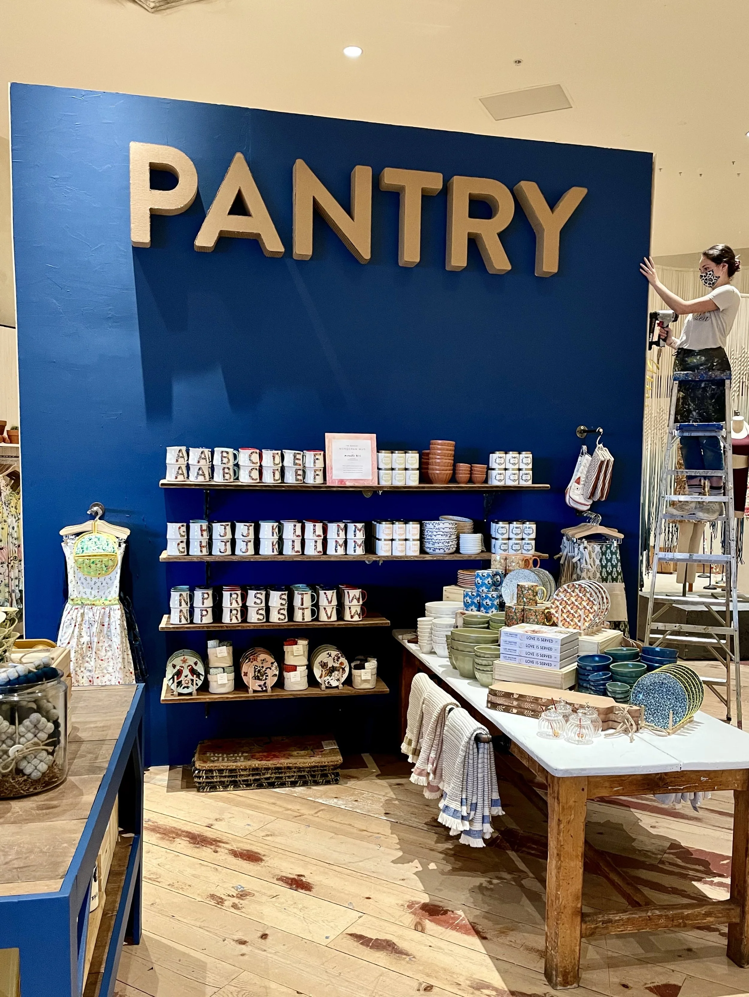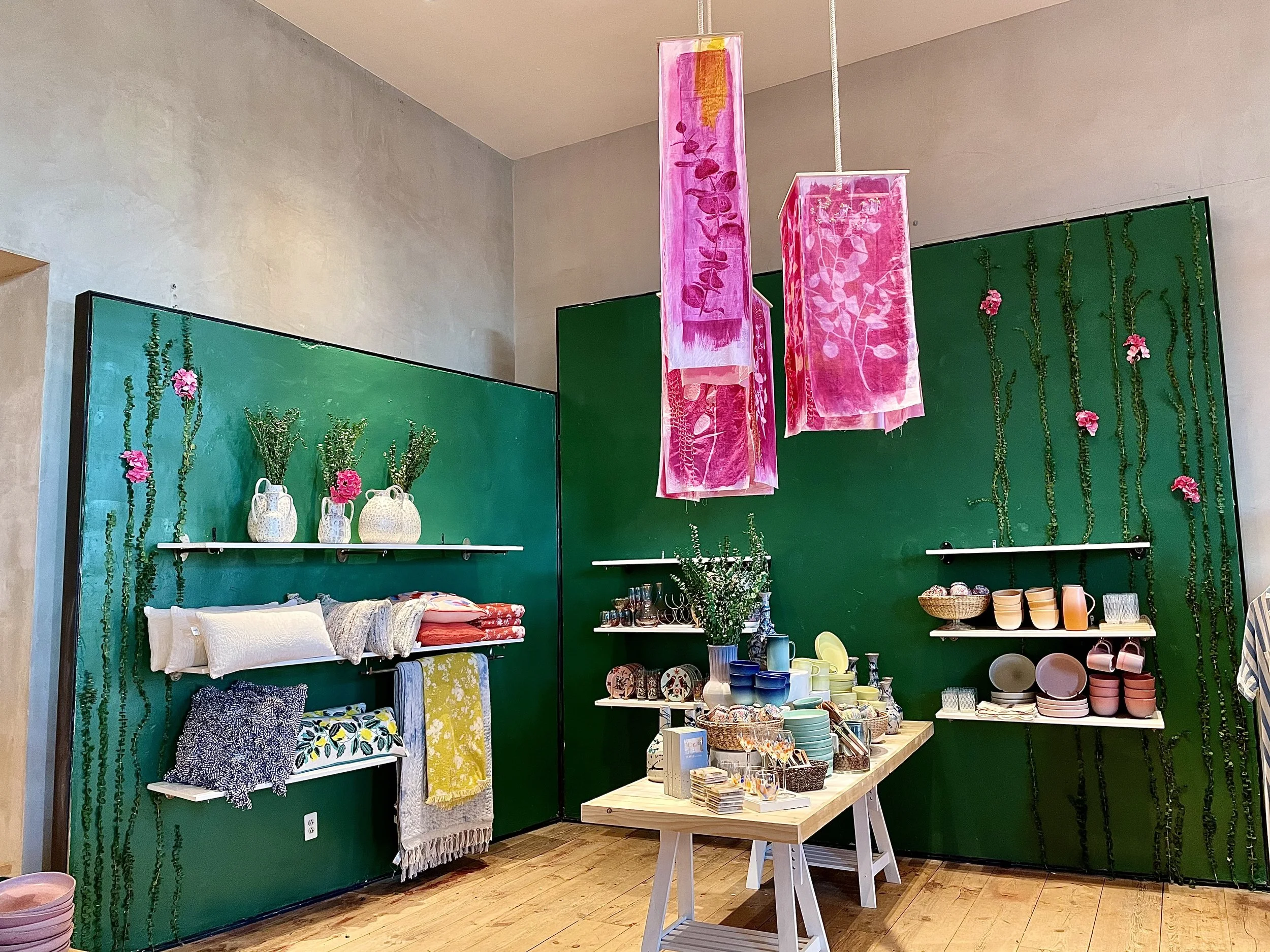 This season's spring windows were all about hydrangeas! 3D sculputral hydrangea blooms were layered against 2D prints of hydrangeas. These season introduced a new process - cyanotype printing. This photographic process uses ferric ammonium citrate and potassium ferricyanide to produce a cyan blue print when exposed to sunlight. It’s the process that created the term “"blueprint,” and dates back to the 1800s.