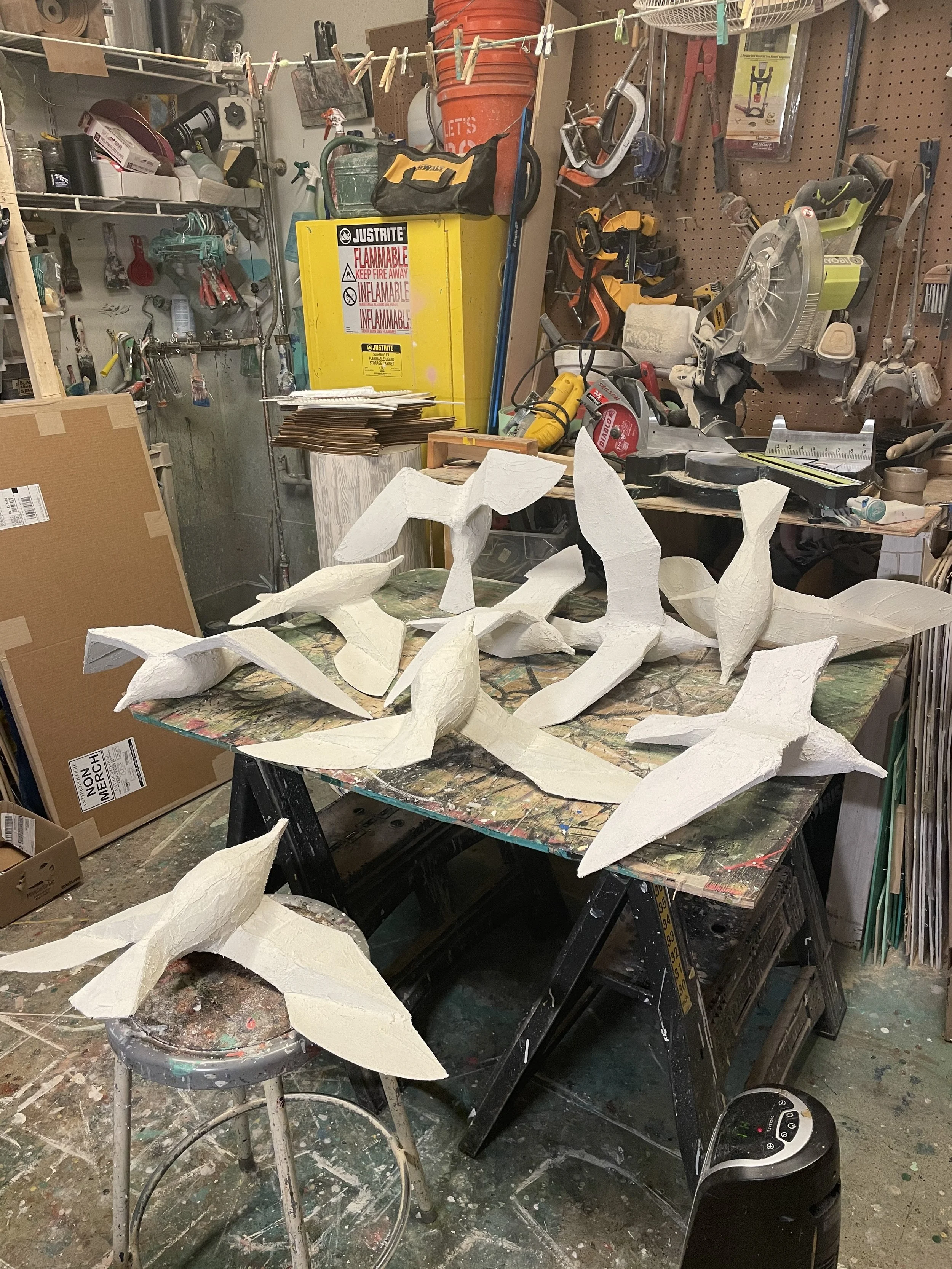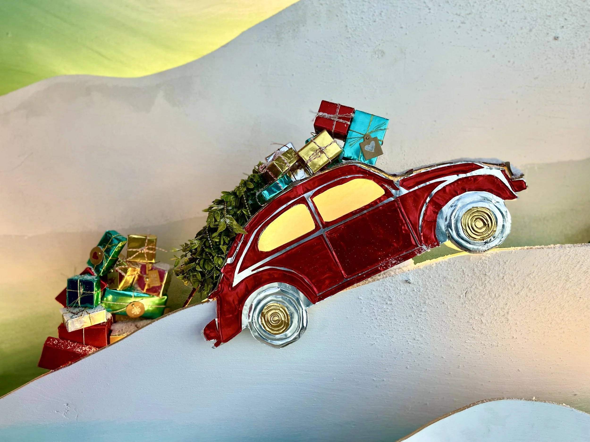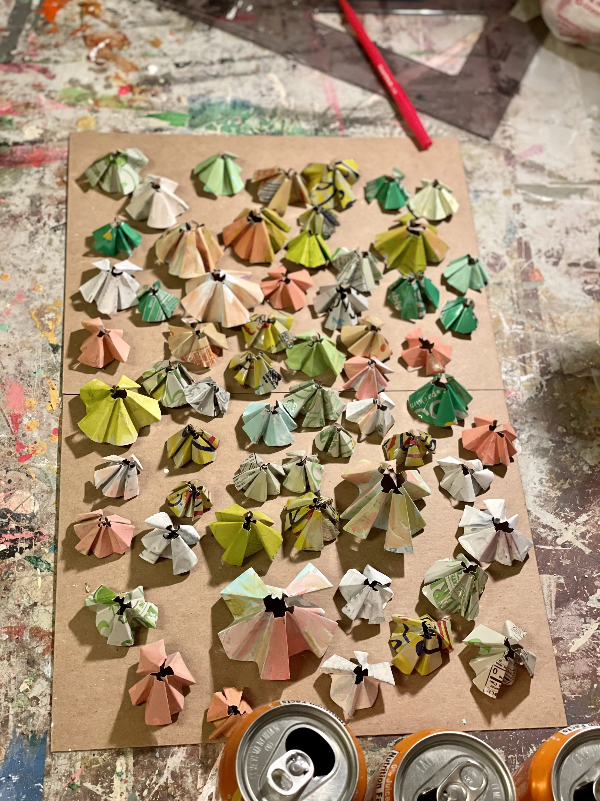 This summer window was an earth day installation, made mostly from what was once garbage. Recycled soda cans, plastic bags, newspapers, magazines, cardboard, Styrofoam, and bubble wrap all payed a part in creating this beach scene.