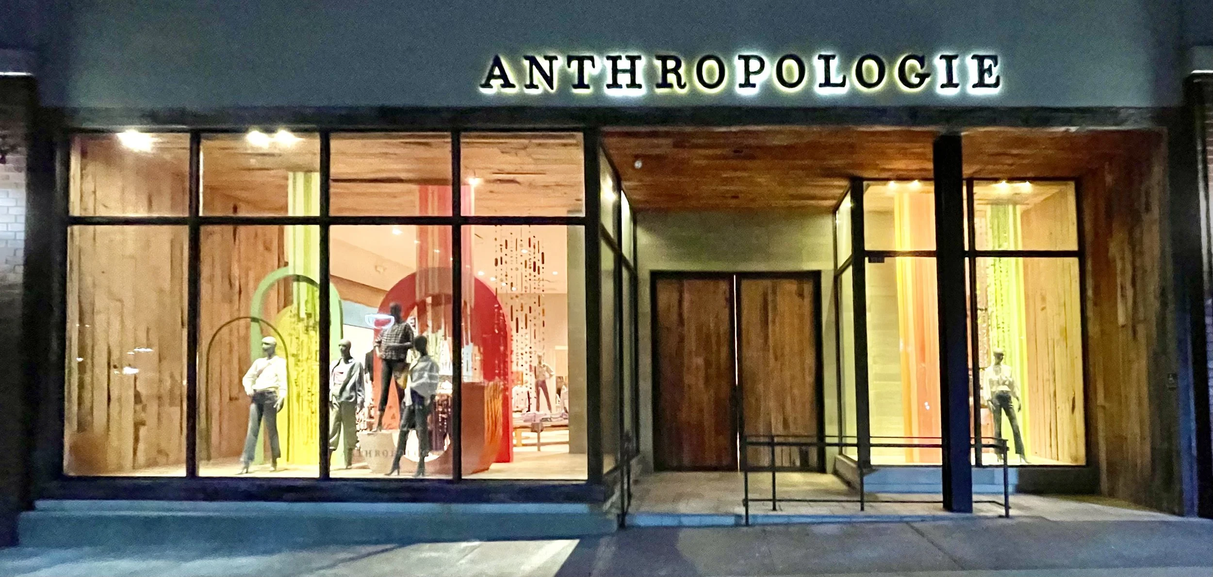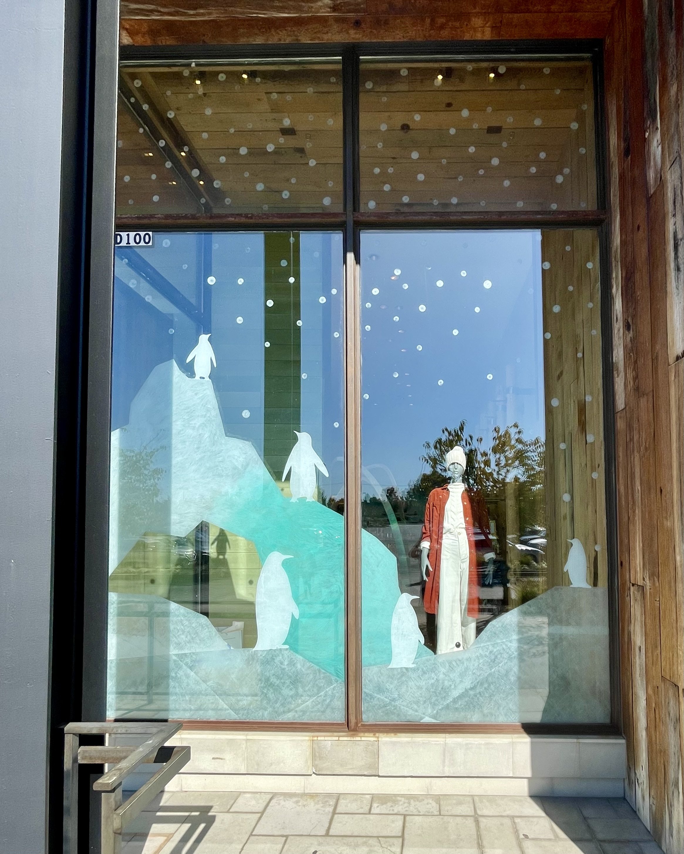 This holiday season showed off what Anthro does best - whimsy, and animals! The star of this window was the adorable huddle of mischievous penguins (yes, a group of penguins is really called a huddle). The many penguins lived among a landscape of icebergs and icicles - with some of the icebergs lit within to create an extra special glowing, magical element at night. Making animals is always such a treat, and each of these penguins were well loved by me, my coworkers, and caught the hearts of many customers.