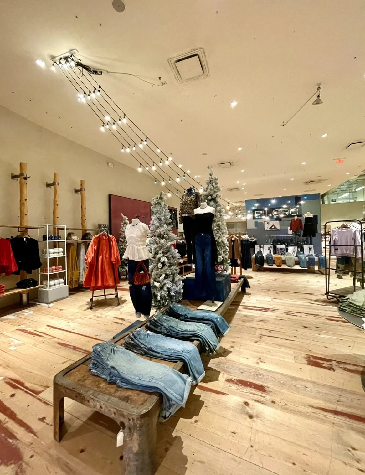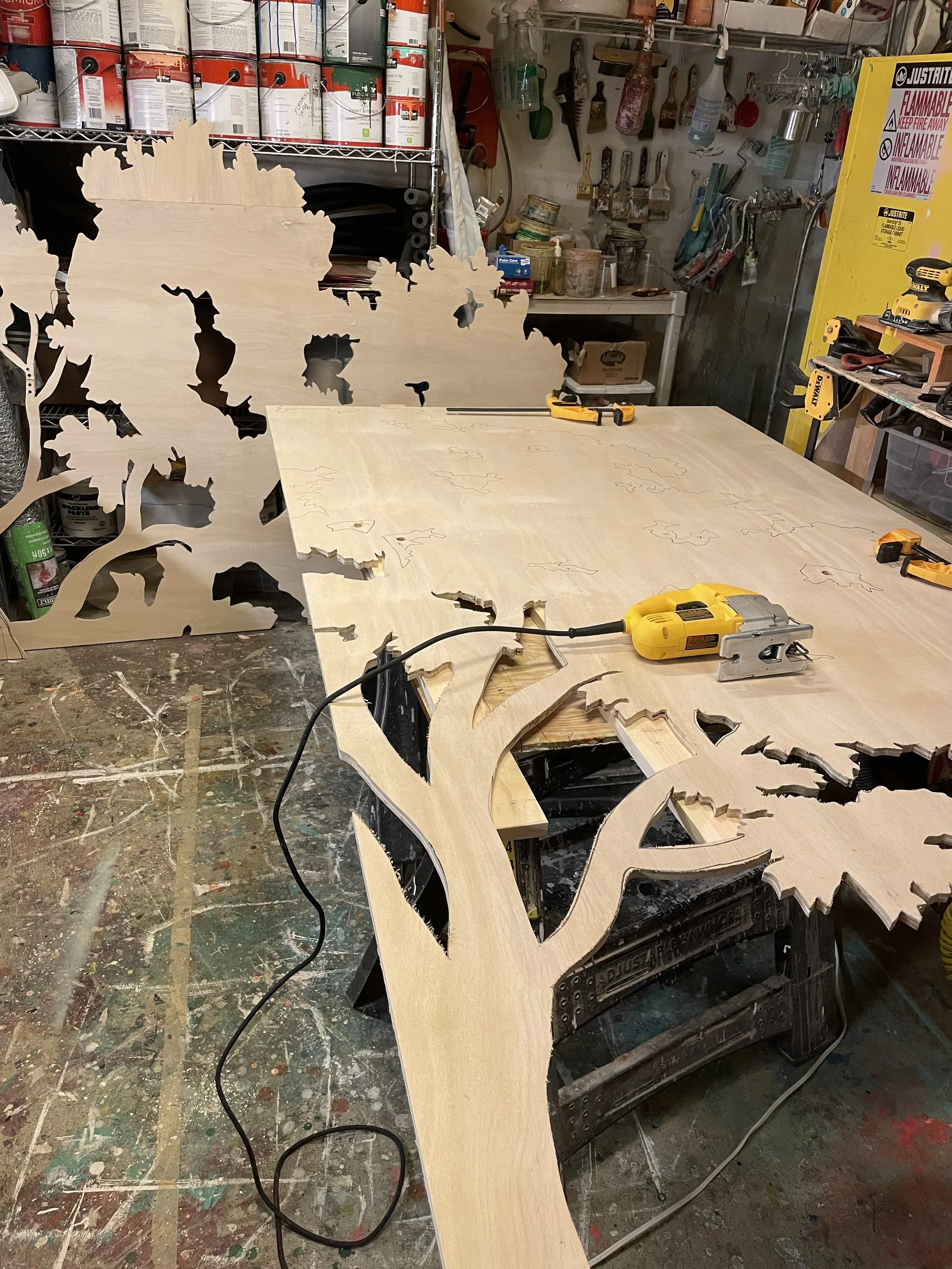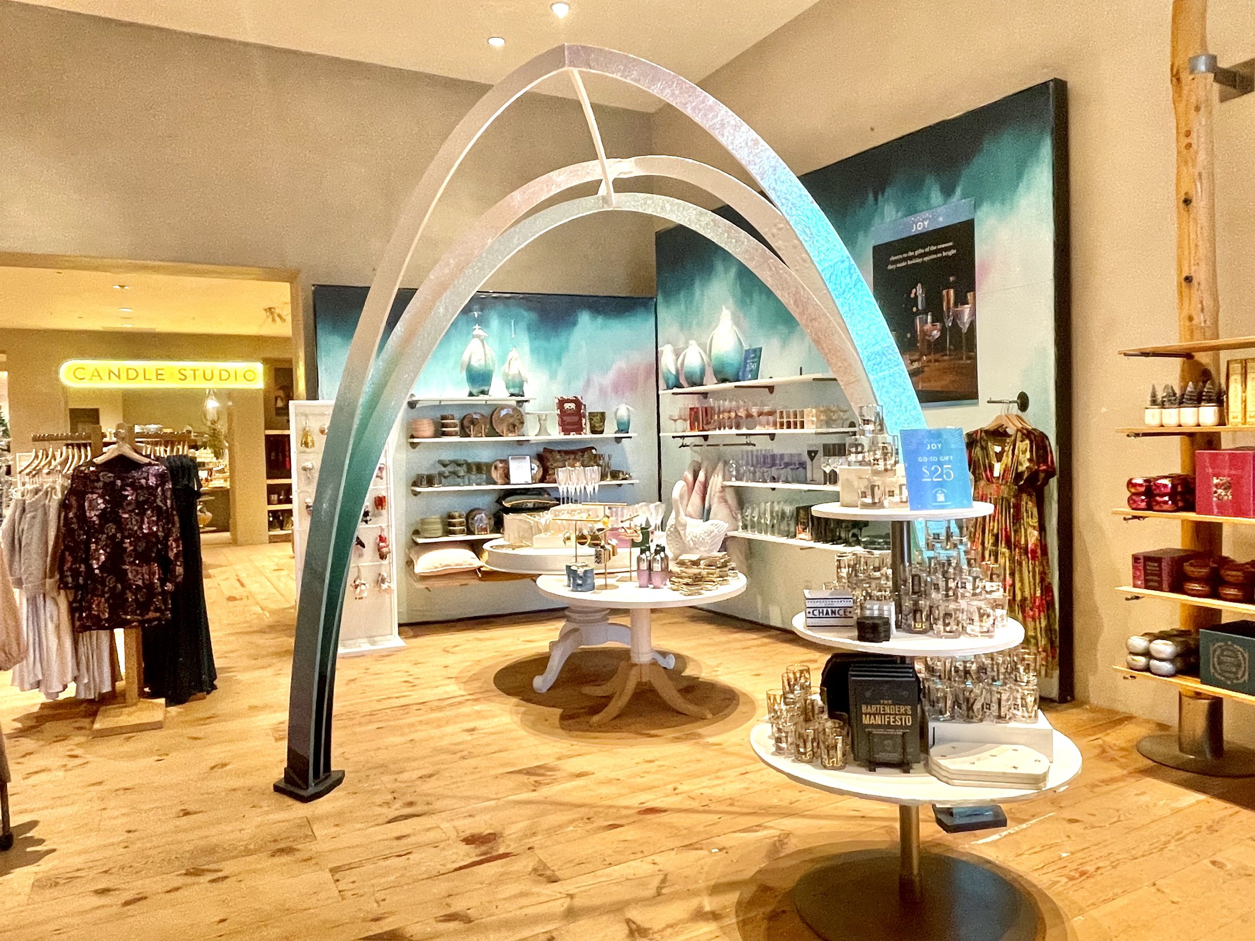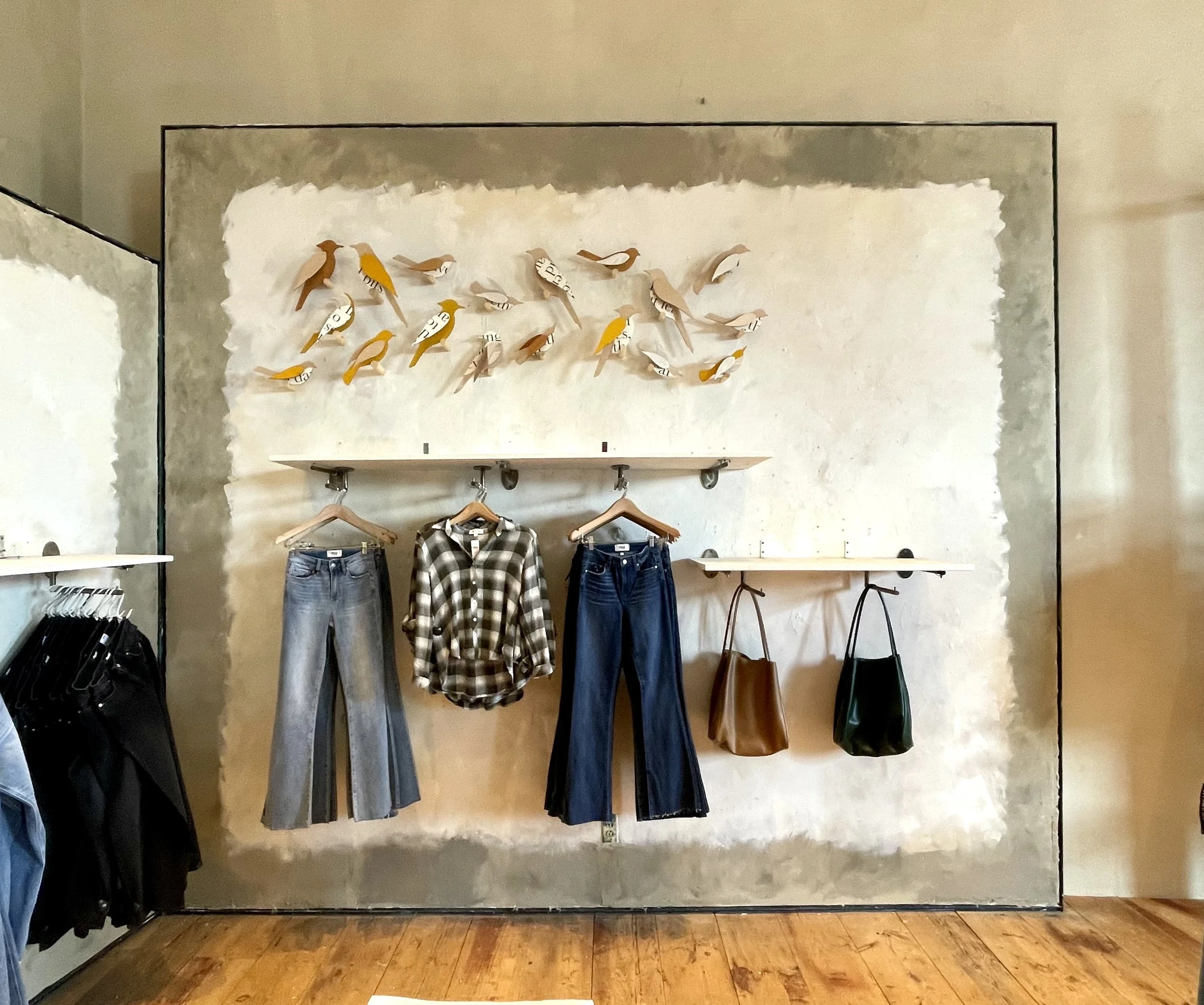 This window told the story of the tree - the tree we see above ground, and the intricate roots hidden underground. Repetition of 2D silhouettes were used to create feminine, graphic, representations of trees. Paired with sculptural 3D trunks, leaves, and root details, there is a balance of dimension and detail.