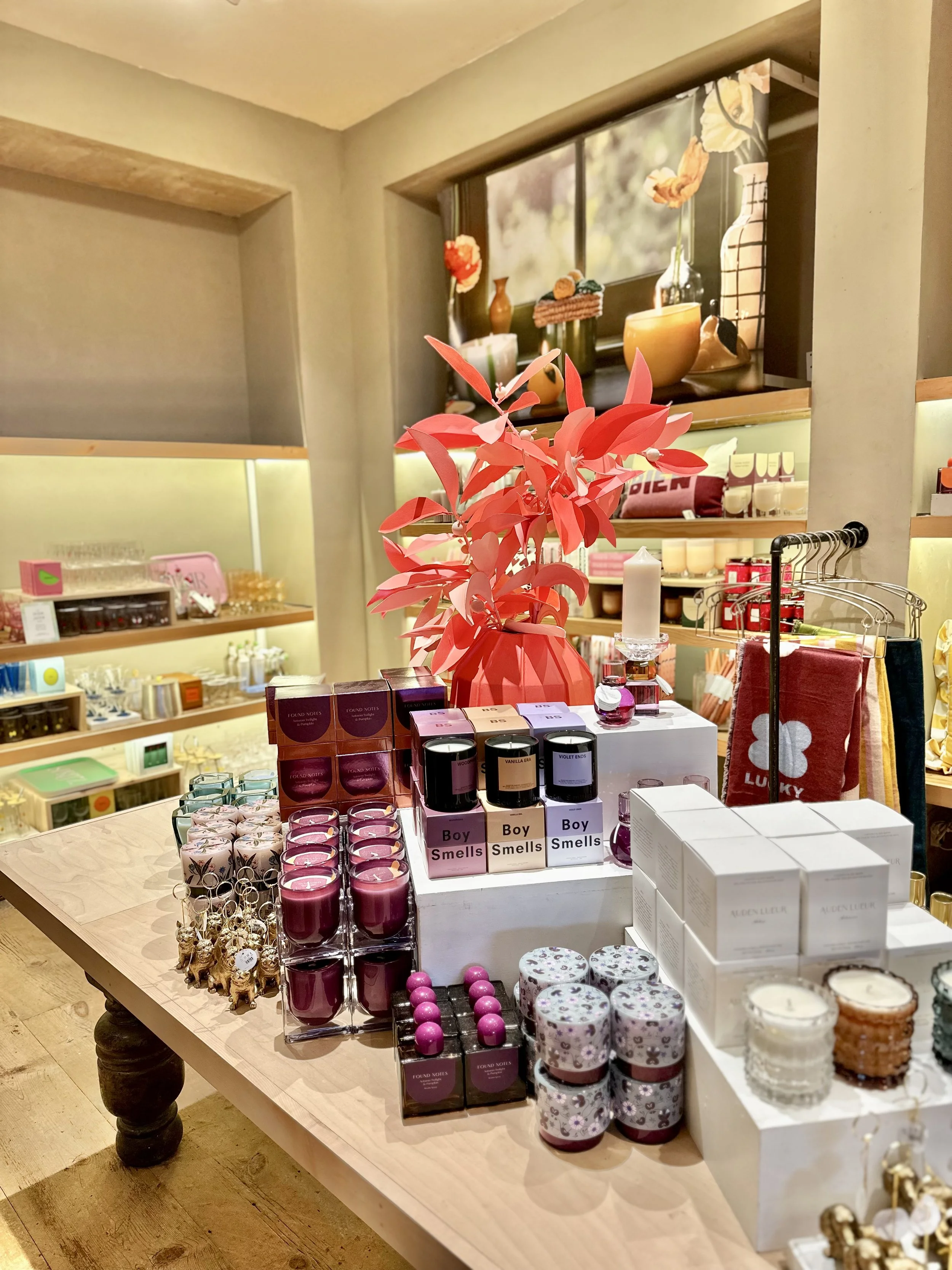 A quieter fall season than usual, the window display was simplified to be just marketing and focused on a few interior display moments. As the holiday display season gets earlier and bigger each year, we made the fall season a smaller display activation to get started on the holiday magic earlier than ever.